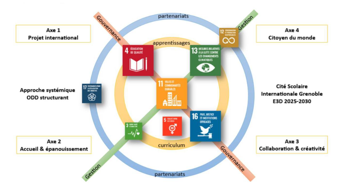 Les écoles et établissements en démarche de développement durable (E3D) associent l’ensemble de la communauté éducative, en relation étroite avec les collectivités territoriales, dans une dynamique collective induite par le projet d’établissement. Cette démarche participe à l’éducation au développement durable, en faisant de l’établissement un lieu d’apprentissage global du développement durable.